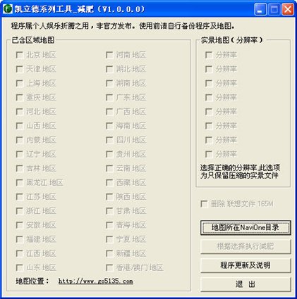 凯立德GPS导航地图减肥工具软件,由于导航地图容量越来越大,多余省份的地图数据可有效清除,减少容量占用,地图照样正常使用。