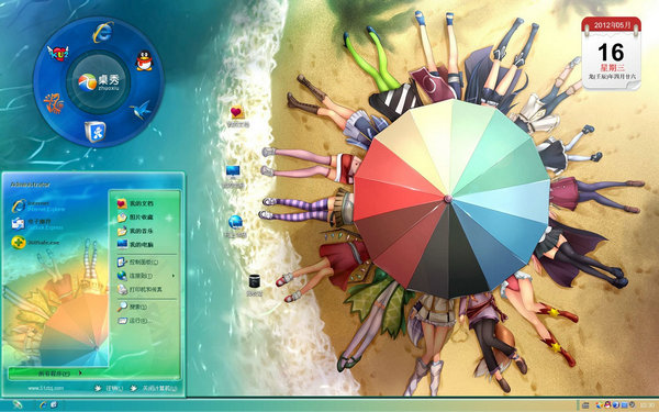 夏日的海滩是非常热闹的,因为陆地的炎热,人们就把自己放在海边,这款夏日海滩xp主题非常有特点哦,在一把七彩太阳伞的下面躺着很多休息的人,而飘荡在海上的救生圈上面有着各种电脑图标,是不是觉得这款电脑主题非常有特点呢