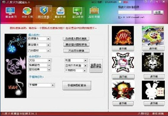八度火线魔盒是一款集修改图标 背景声音 游戏窗口化 修改房名 录像下载 游戏加速为一体的多功能软件,可以让玩家更多的DIY,增加游戏的乐趣。同时添加在线同步更新,每天更新皮肤 背景音乐 杀敌图标 天天新鲜,同时更新搞笑 教程 等视频下载。使用教程:安装软件,选择图标更换,选择CF根目录,然后就可以使用所有功能了。