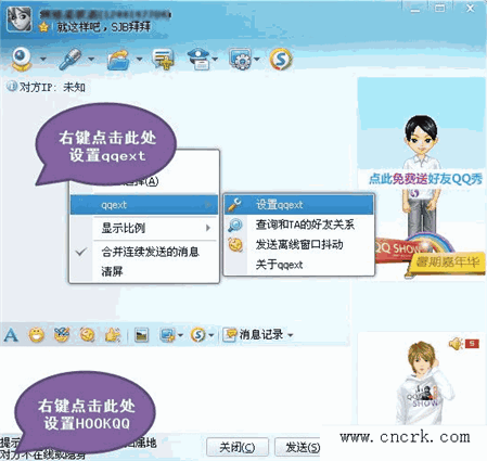 2.增加功能:群内显示完整昵称(打开一个群窗口,消息框内右键->qqext菜单中)