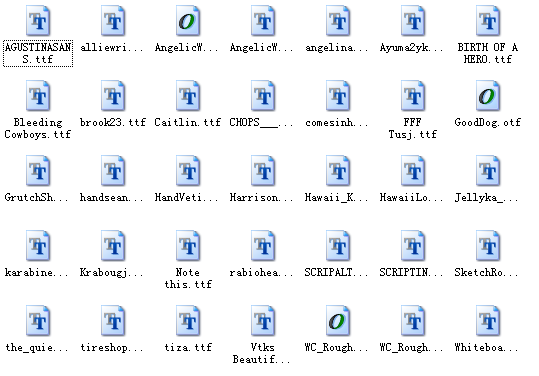 起点提供英文手写体下载,本款为32款英文手写体打包下载,收集了网络上一些非常漂亮和酷炫的英文字母手写体,字体风格多样化,除了有手绘风格字体外,还有卡通风格,商务风格,涂鸦风格字体等等,希望这些超级漂亮的英文手写体能够让你的设计作品更加的完美!!