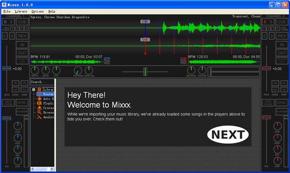 Mixxx是开放源码的免费数字DJ软件,可以使用一台个人电脑将独立的音乐混合在一起。