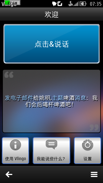 vlingo支持多国语言,当然包括中文,这也是目前唯一一款支持中文的语音助手!