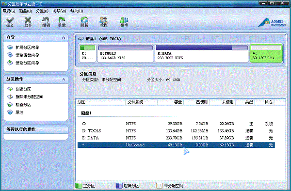 在买电脑装机时,磁盘分区与设置分区大小的问题一般都是由装机人员设定的,这点并没有引起太多购买者的注意。一般情况下在装机时都将一个磁盘分成4个分区,有时候是系统分区C盘太小,数据盘太多或C盘太多,其它数据盘太小。甚至还有一个硬盘的所有容量都划分给系统盘使用。总之就是磁盘分区可能不合理,这时怎么解决呢?这时就需要重新调整硬盘分区的大小,下面是分区助手调整分区大小的操作步骤。调整分区实例