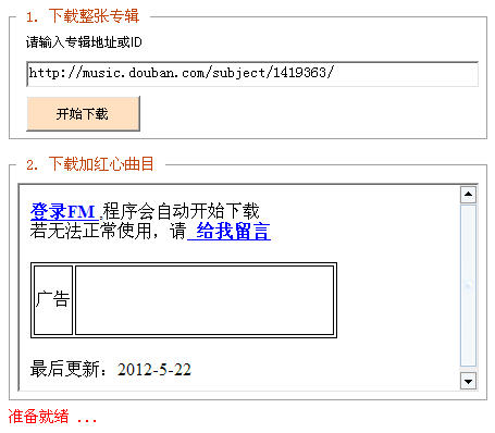 豆瓣电台音乐下载工具 V2.0.2绿色免费版 豆瓣电台下载工具是一款用于下载豆瓣电台上音乐的下载工具软件。
