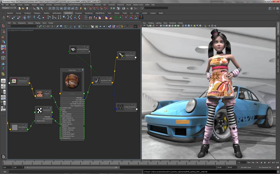 Animation:Trax 非线性动画编辑器,逆向动力学(IK),强大的角色皮肤连接功能,高级的变形工具。