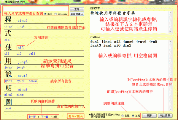 粤语发音词典,多功能粤语发音查询,语音朗读,声音合成,共计收录34,019个正体汉字!