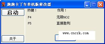 对应跑跑卡丁车单机版的作弊工具 F4 无限NO2能量 F5 直接胜利