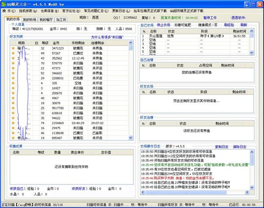 2、自动扫描好友的农场,支持校友,可以定时扫描好友的可操作信息(可摘、可浇水、可除草、可杀虫),并自动进行摘取、浇水等操作;
