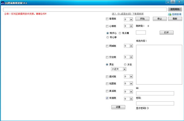 QQ漂流瓶极速版是一款专门针对网络营销人员开发的软件,开发者本着“个性化操作用户做,重复性操作软件做”的原则,让本软件在省时上达到完美:网络正常的情况下20来个账号的任务只要几分钟就能完成,让你的推广更轻松,更愉快。