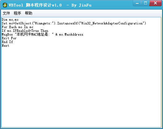 VBTool是一个免费脚本程序设计软件,它可以帮助您执行相关及重要的操作,代码完全与VBS互相兼容,如果您喜欢本软件请把本软件告诉您的朋友。