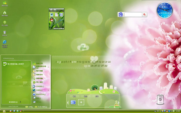 夏的水滴桌面背景 简体中文官方安装版 夏的水滴桌面背景主题的桌面背景是粉绿色的,在绿色之上有一朵粉色的花朵,上面还有这晶莹的水滴呢?不仅如此这款电脑桌面上面还有六月份的日历哦,让你们的生活有电脑提醒更贴心!