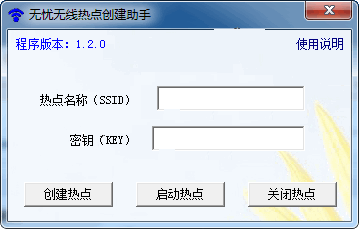 无忧无线热点创建助手采用visual basic6.0开发,软件体积小,无需安装。用于共享本地连接或宽带连接网络。 虚拟网卡与本地连接的网络共享需用户自己建立!