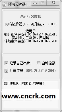 阿呜QQ记牌器是一款QQ升级游戏辅助工具,该QQ记牌器能够帮助玩家记录各家出过的牌,统计尚未出现过的牌。坐对面的玩家同时使用本工具,能够彼此查看对方手中的牌。