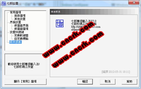 繁体七部粤语输入法v5.0是以最新版的极点中文输入平台为核心技术制作而成的,繁体七部粤语输入法是一款功能强大的中文输入法,繁体七部粤语输入法字词库采用港、台繁体标准字形,繁体七部粤语输入法收录了超过26万条字词,繁体七部粤语输入法还支持用户词库的生成;繁体七部粤语输入法有三种输入模式(七部粤语、七部拼音、拼音输入)供用户选择,实现七部编码与拼音编码无缝输入;繁体七部粤语输入法支持在线查询字词编码,支持在线造词、删词,手动、自动调序等功能;繁体七部粤语输入法全面支持2000 / 2003 / xp / vista / windows 7(x86、x64)等操作系统。