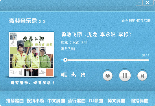 奇梦音乐盒迷你版 V2.0.1.4 绿色免费版 奇梦音乐在线播放器(简称:奇梦音乐盒)是由奇梦音乐传媒科技有限公司(简称:奇梦网)自助研发的新一代网站流行歌曲视听最棒的播放音乐盒!奇梦音乐盒是全国在线音乐试听网站最好的音乐播放器,速度最快的音乐试听体验!歌曲很全,速度很快,试听流畅,口碑极佳,拥有数百万的歌曲等你免费试听!