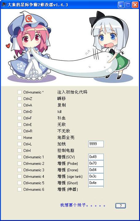 星际争霸2修改器 主要功能: 瞬移,复制,kill杀死单位,补血,无敌,地图全开亮,加指定书目无限金钱 控制电脑,增援等