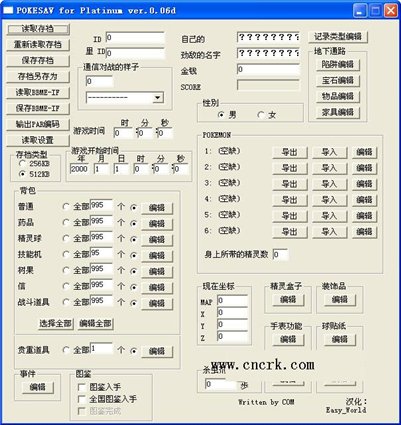 口袋妖怪白金修改器下载,针对模拟器游戏口袋怪兽白金版的的存档修改。能够修改自己和敌人的名字,修改物品,药物,精灵,技能机,树果,信,战斗道具,贵重道具等。
