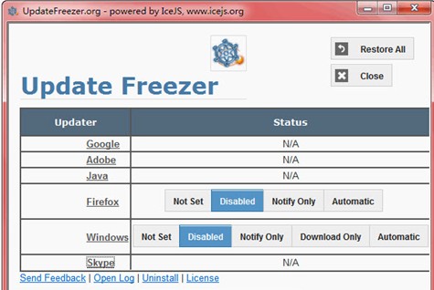 管理应用软件的自动更新功能的工具,可用于临时一键禁用各类软件的自动更新,能设置自动更新状态为「禁止更新、仅显示更新通知或自动更新」,目前支持的软件包括 Google、Adobe、Java 软件、Firefox、Windows 更新、Skype 等。