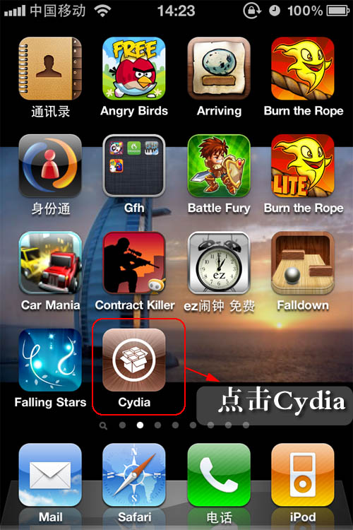 1、Cydia已经包括在软件里面,越狱的时候不需要上网