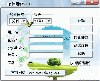 电脑闹钟软件邮件闹钟是一款邮件声音提醒软件,电脑闹钟软件邮件闹钟能检测是否有新邮件,并响铃提示。电脑闹钟软件邮件闹钟1.0绿色版(邮件声音提醒软件)由起点软件站为您最新收集整理,电脑闹钟软件邮件闹钟绿色、免费、无毒,请放心使用