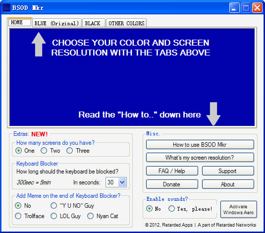 自制死机蓝屏界面软件 BSOD Mkr 是作为可访问和方便的假蓝屏死机制造
