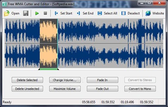 该程序显示一个波形图,让您轻松选择的WMA编辑部分。