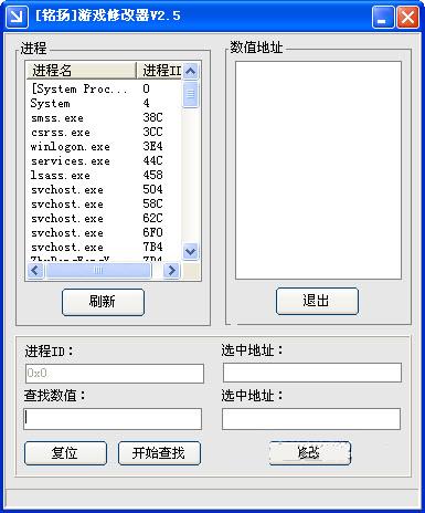 铭扬游戏修改器 和金山游侠与CE修改器,gamemaster功能类似的国产个人游戏修改工具 可以修改几乎所有的单机游戏 是采用读取内存进程信息来修改的方法 适合有一定电脑继承和修改经验