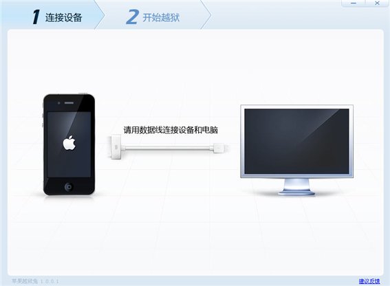 1、打开苹果越狱兔,将设备通过USB数据线连接到电脑上