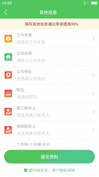 采用大数据风控系统,让您的信用更值钱,无需面审,无需人工复审,所有信息均采用SSL加密传输,严格保护用户隐私和账户;
