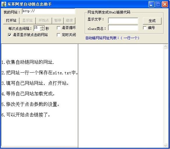 功能:收集了一定的自动链网站后,通过软件自动点击自己网站上这些自动链网站的链接。