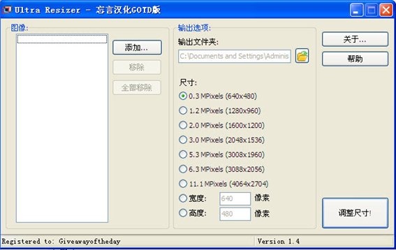 批量图像缩放工具(Ultra Resizer) v1.4.5.22 汉化GOTD绿色特别版 Ultra Resizer 是一个批量图像缩放工具. 您可以一次调整大量的JPEG, BMP和PNG文件尺寸, 具有良好的输出质量. Ultra Resizer 速度快,非常容易使用: 您只需选择您想调整大小的图像, 选择一个输出文件夹, 选择所需的输出尺寸, 然后按压“调整大小!”按钮, 所有的图像将会被调整.