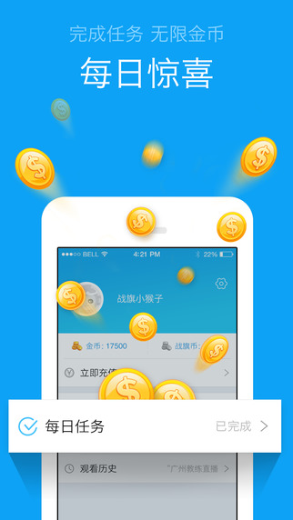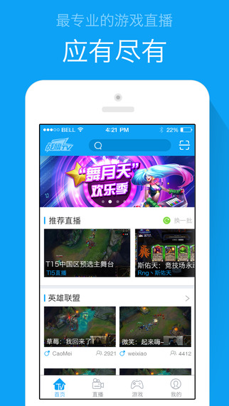 战旗每日同步大量游戏直播,精彩视频不容错过,让您天天都看个够!战旗拥有国内外最顶尖的职业赛事直播,更有签约各路大神直播,让您零距离与大神接触,分分钟技术提高。