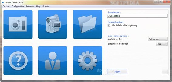 桌面截图器(Nebula Cloud) 一个方便和可靠的实用设计,使您可以捕捉您的桌面截图。 捕捉全屏,活动窗口或只有一部分。 您还可以选择多种图片格式:PNG,BMP和GIF,TIFF和JPG