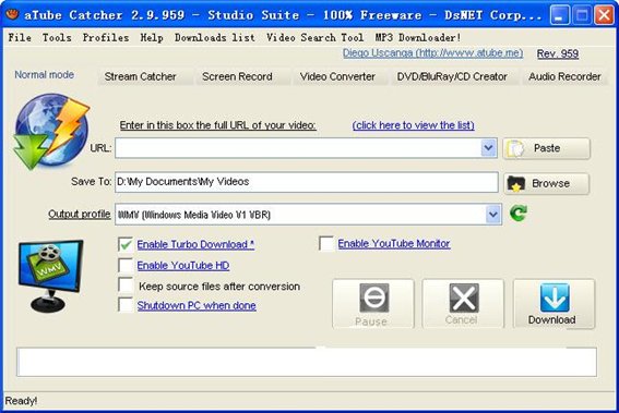 网络视频下载转换(aTube Catcher)能从YouTube、MySpace、Dailymotion、Megavideo、Google、Yahoo、Metacafe等100多个视频共享网站下载并转换视频格式,而不浪费时间,那么没有比它更好的软件了