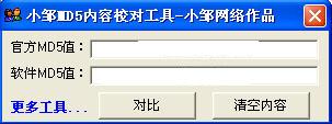 小邹MD5内容校对工具主要用于校对MD5值也就是说官方软件发布出来之后MD5值部分不同这个时候可能被非法人士加入病毒,所以校对MD5值是非常有必要的,很方面 小巧的工具就能解决。