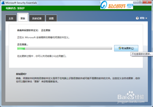 6.安装成功后,MSE会提示你立即升级到最新的病毒库并扫描计算机。