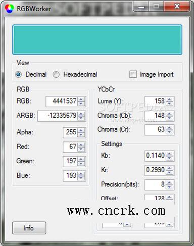 RGBWorker是一个小而有效的应用,使您可以轻松地选择任何颜色,并详细查看其值。 RGBWorker主要是针对网页设计师,可以显示ARGB值,单独和与它的帮助,你就可以导入数字图像的颜色。