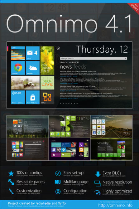 Omnimo是基于著名的开源桌面定制平台Rainmeter而制作的一款主题模拟程序,不但画面风格和Windows Phone 7极为相似,还可以将主题中的图标与电脑上的软件进行连接,比如天气、Gmail、iTunes、Twitter、Office等