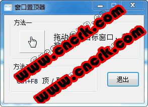 窗口置顶器 2.1绿色免费版下载 窗口置顶器 是一个可以让任何程序窗口具有置顶功能的软件。窗口置顶器能够使一个程序的窗口永远在其它窗口的顶层。 播放手到目标窗口,释放鼠标即可,快捷键:CTRL+F8