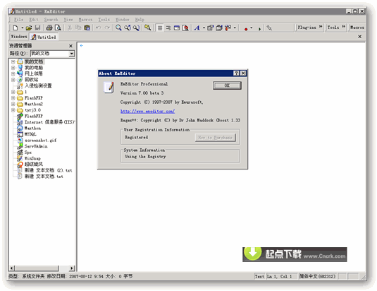 EmEditor Pro V7.00.0 Final 汉化修正绿色版 一款功能强大的文本编辑器!它启动速度快,可以完全代替Windows自带的记事本,足以胜任日常的文本编辑工作,而且良好地支持Unicode和中文字符,还支持20多种编程语言的语法突出显示。此专业版,增强了程序的编辑功能,使其更适合编程人员对个别程序代码进行编辑修改.官方最新版本,新加入了四个窗口插件,已包含汉化版本。