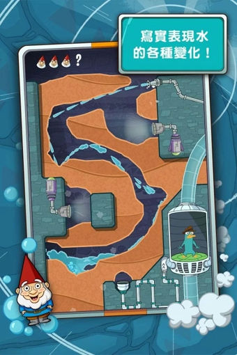 在游戏中,玩家将体验各种形态的水。切开各关卡的泥土,引导水和蒸气穿过冰、泥土和石头进入管道。游戏中,液体流动的画面非常逼真,好玩极了!