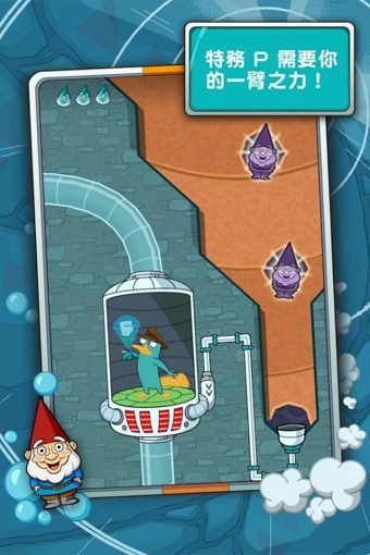 来自《飞哥与小佛》的泰瑞是个不平凡的鸭嘴兽,实际上他是一位水陆两栖密探,人称P密探!而且,你知道吗,他可是世界的救星!在莫来管队长召唤他回总部的途中,我们这位头戴礼帽的前卫密探不幸困在了运输管道中。玩家必须将水或水蒸气引入为管道提供动力的发电机中,帮助P密探到达总部听取任务简报。
