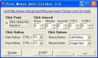 免费鼠标点击精灵(Free Mouse Auto Clicker) 是一个设计巧妙的小工具,用来节省您的时间。 这是一个自动鼠标点击工具。它被用来在指定的时间间隔,在屏幕上的任何位置自动鼠标点击。【软件功能】