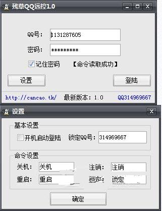 残草QQ远控可以利用QQ互加好友,发送命令来实现简单的关机、锁定、重启、注销