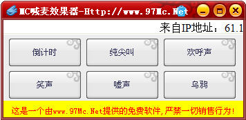 倒计时(网络采集&独家最新版)、纯尖叫(MC必备音效)、欢呼声(独家新版本),笑声、嘘声、乌鸦声(主持专用,笑声及乌鸦声重新采集编辑,不包含令人反感的声音,做到网络软件的高实用性。