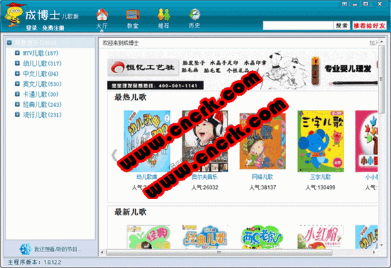 成博士经典儿歌大全(儿歌大全视频) V1.0.12.2 免费版 成博士经典儿歌大全(儿歌大全视频)(2012版),收集了大量宝宝喜欢的mtv,中文儿歌,英文儿歌,卡通经典歌曲,成博士经典儿歌大全(儿歌大全视频)资源丰富。