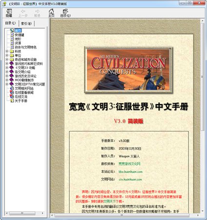 文明3秘籍宽宽整理的中文文明3说明书手册,集合了文明3秘籍和文明3征服世界秘籍,作战思路技巧以及mod开发方法等 还有文明系列的回顾和对西德梅尔的介绍