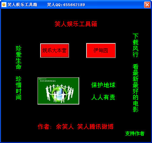 笑人娱乐工具箱是笑人用VB编译的软件,欢迎VB爱好者和笑人相互交流,可提供源码互换,相互学习,共同进步。大家对笑人娱乐工具箱有什么建议指教可以通过QQ和笑人联系。