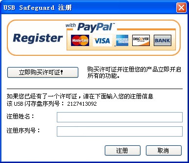 1.把usbsafeguard程序放置U盘或者存储卡,运行程序和注册机,看图输入u盘序列号,然后输入注册码。